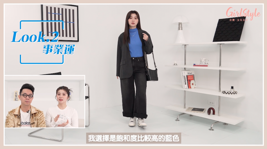 Look.2 事業運穿搭「黑藍色系、大膽前衛|氣場全開坐等升官!」