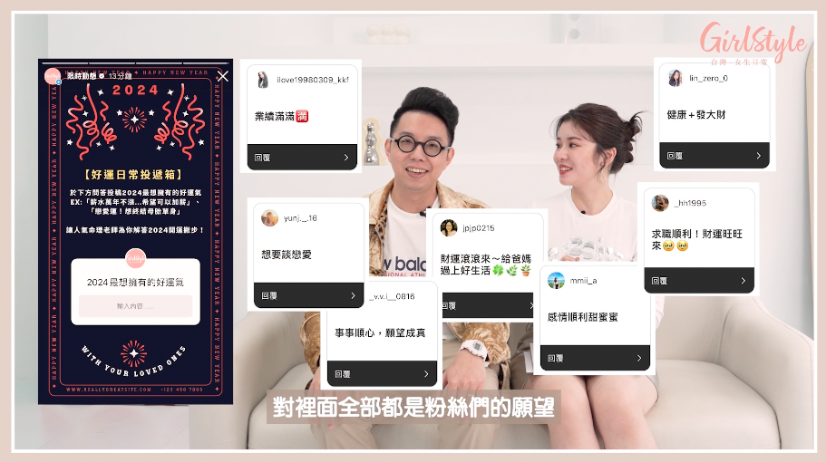 前陣子GirlStyle特別舉辦了線上問答活動「好運日常投遞箱」,邀請粉絲們跟我們分享「2024最想擁有的好運氣」編輯也從雪片般的回覆裡看到大家真的都很需要開運一下(笑)一起來看看你的好運願望有沒有被選中!讓簡少年老師幫你解答開運撇步~