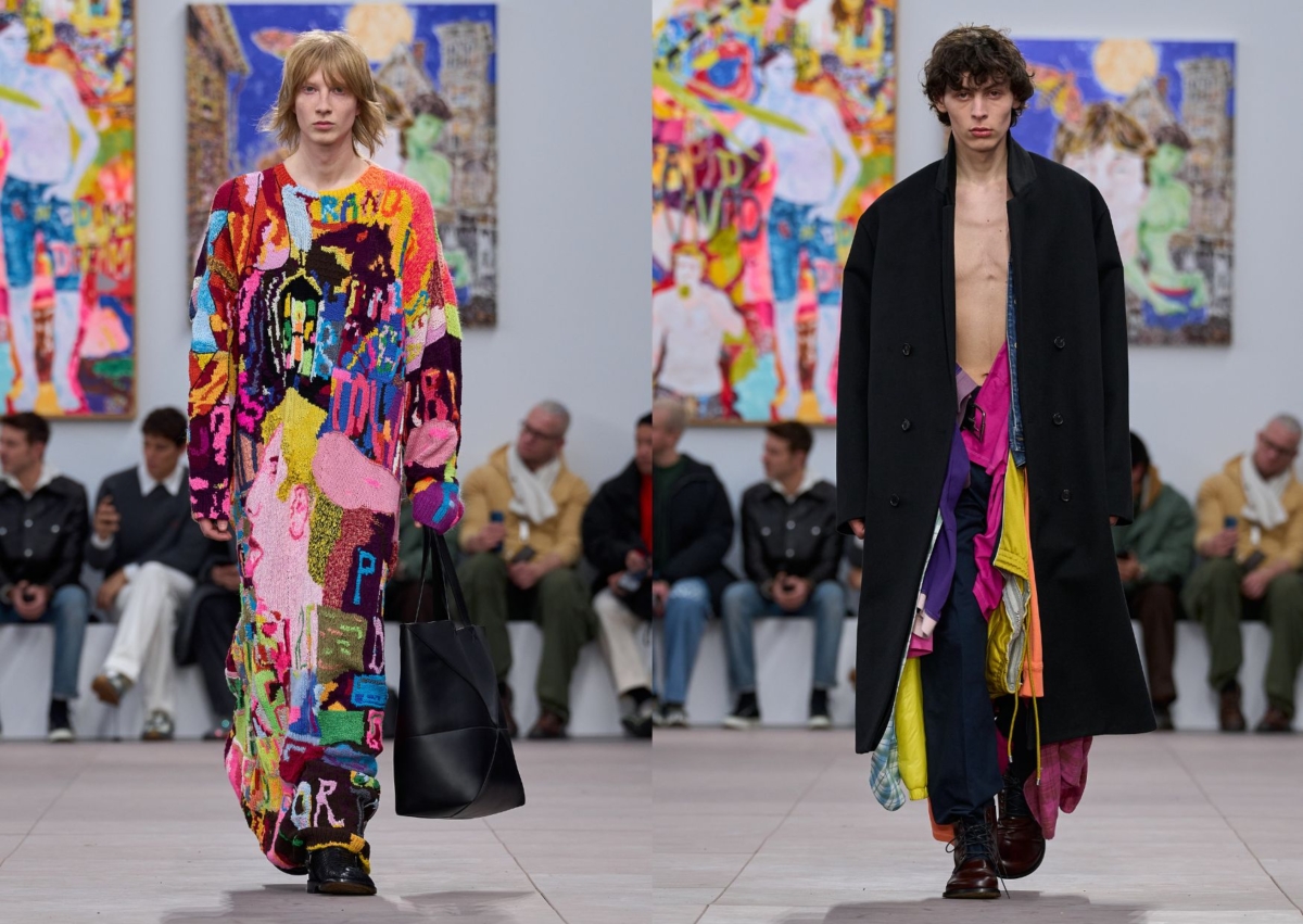 LOEWE 2024 秋冬男裝系列是對於男子氣概的反思,結合了藝術家 Richard Hawkins 的概念,將社交媒體、狗仔隊追蹤名人的照片及名人文化之類的組成一幅拼貼畫,而這種拼貼出來的「現實」就是他最經典的創作。