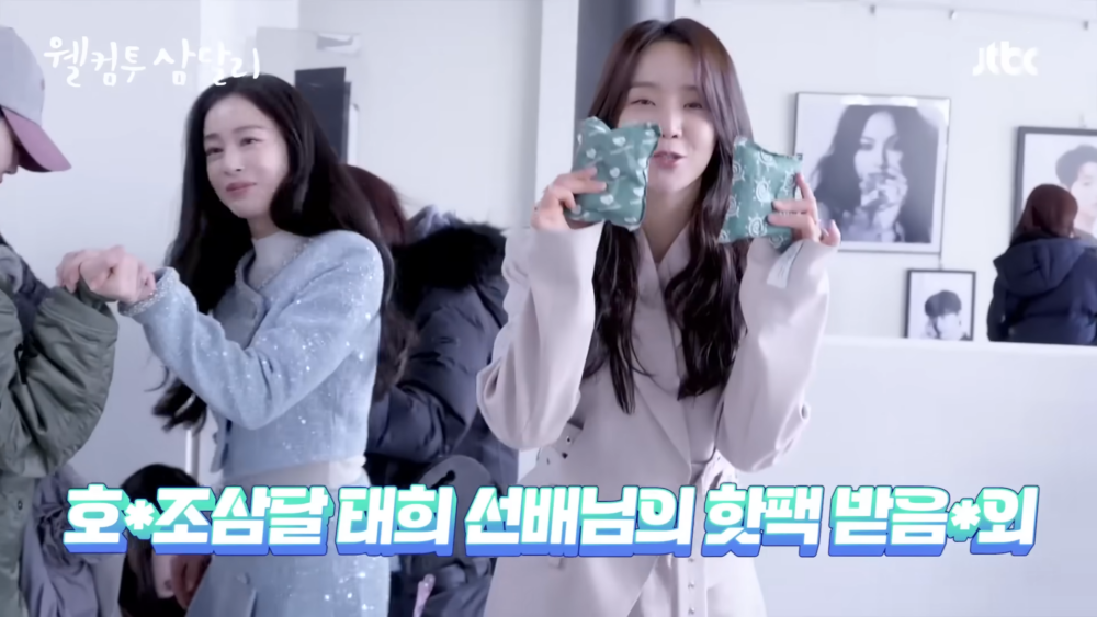 就在兩人手握著手聊天的時候,感受到申惠善手很冰的金泰希也很貼心地將手中的暖寶寶給了她~而申迷妹轉頭就向現場的大家炫耀說: 「這是前輩送給我的暖暖包~」