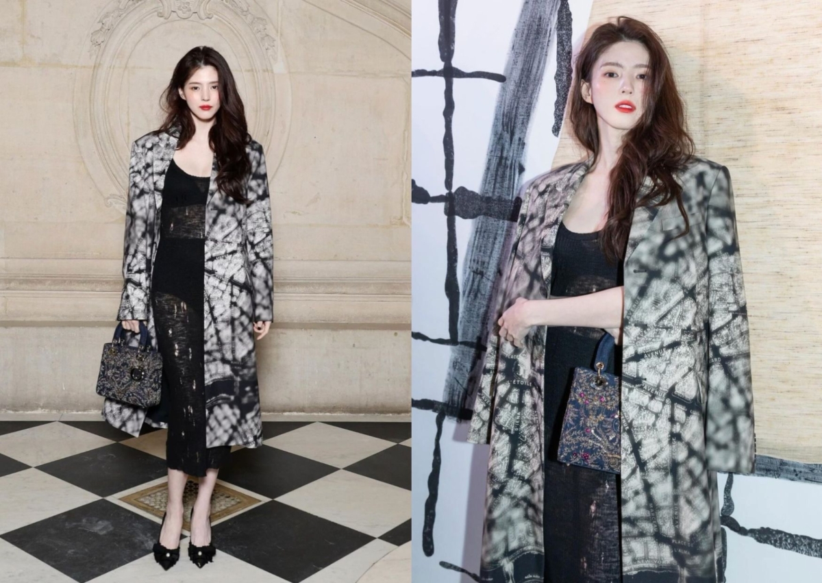 韓紹禧這次出席 Dior 2024 高訂大秀照片一發出立刻造成全網轟動,除了韓紹禧看到自己的女神娜塔莉波曼馬上角色轉換成小迷妹的模樣造成話題之外,造型穿搭也是大亮點,她選擇 Dior 2024 春夏系列印花西裝外套,搭配黑色針織背心連身裙,黑色薄紗下透出若隱若現的低胸背心內搭和白皙肌膚,披著一頭隨性大捲髮、擦上法式紅唇和深邃妝容,手拿 Lady Dior 深藍色訂製款,完美詮釋帶點性感小女人的復古優雅氣質!