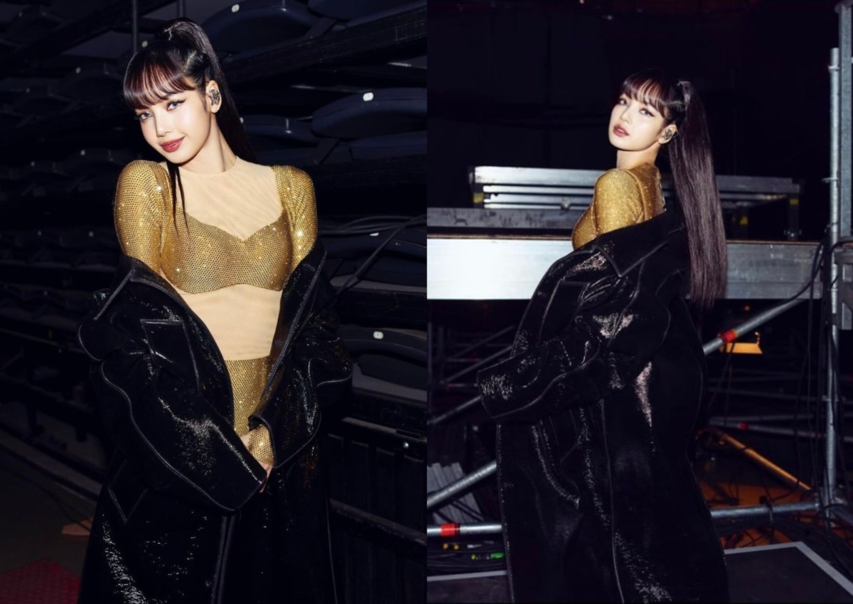 Lisa 辣度爆表!身穿 LOEWE 金色水鑽緊身馬甲