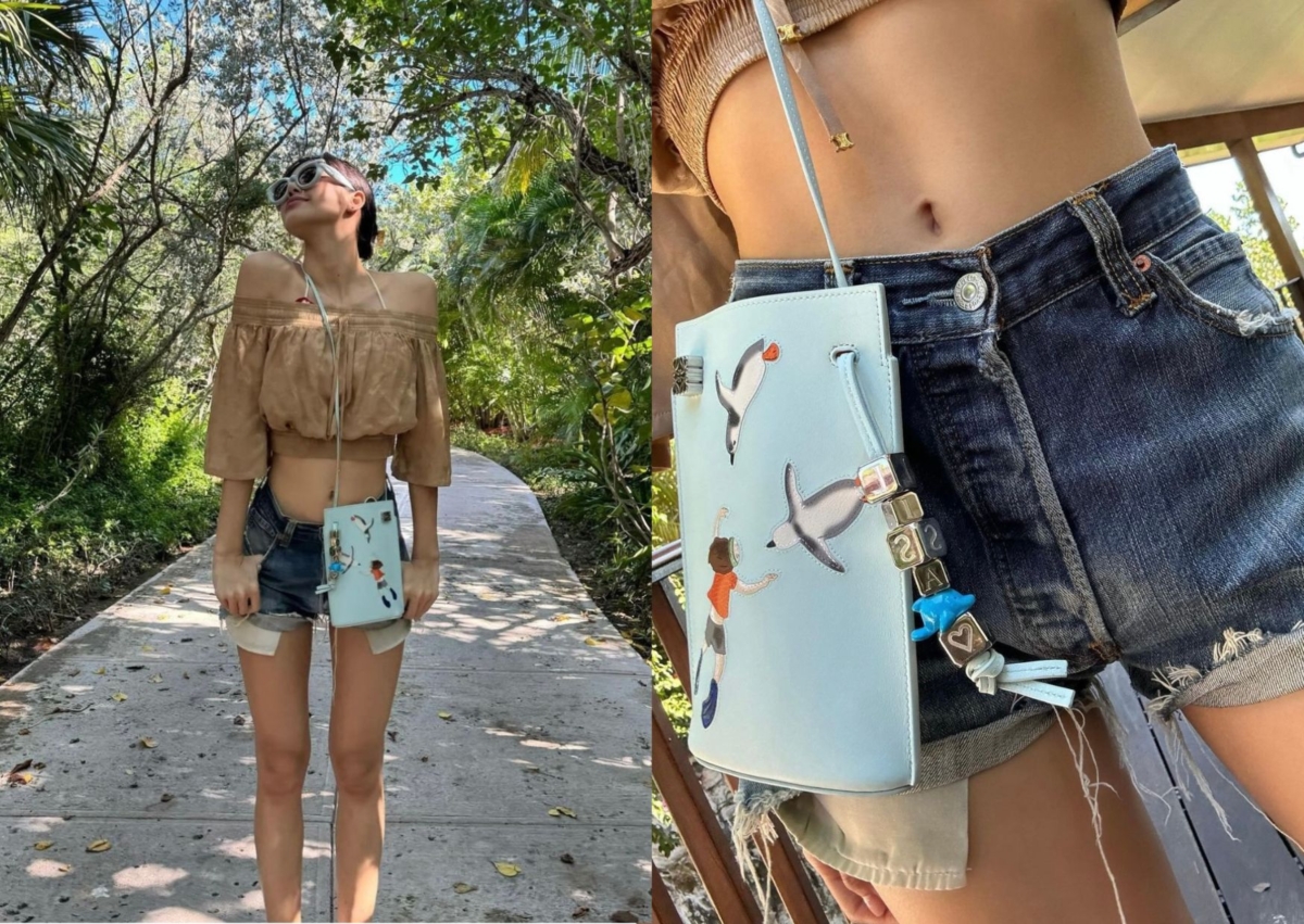 去年年底 Lisa 也在社群發佈了自己的海島度假穿搭,先是身穿透膚長袖搭配 LOEWE 拉菲草編包,圓潤外型背上身超可愛;另外一套則是以平口上衣、牛仔短褲的休閒穿搭,揹上 LOEWE 與日本藝術家 Suna Fujita 聯名的水藍色企鵝小包,不禁讓粉絲們和時尚迷大膽猜測,是否未來有機會能看見 Lisa 與 LOEWE 交手合作!