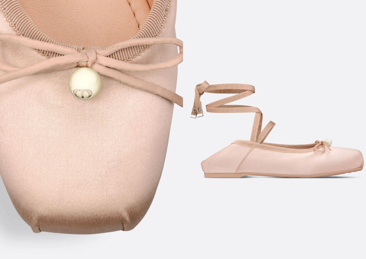 精品芭蕾舞鞋02:Dior D-Joy 裸粉色緞面和羅緞芭蕾平底鞋,NT$ 28,000