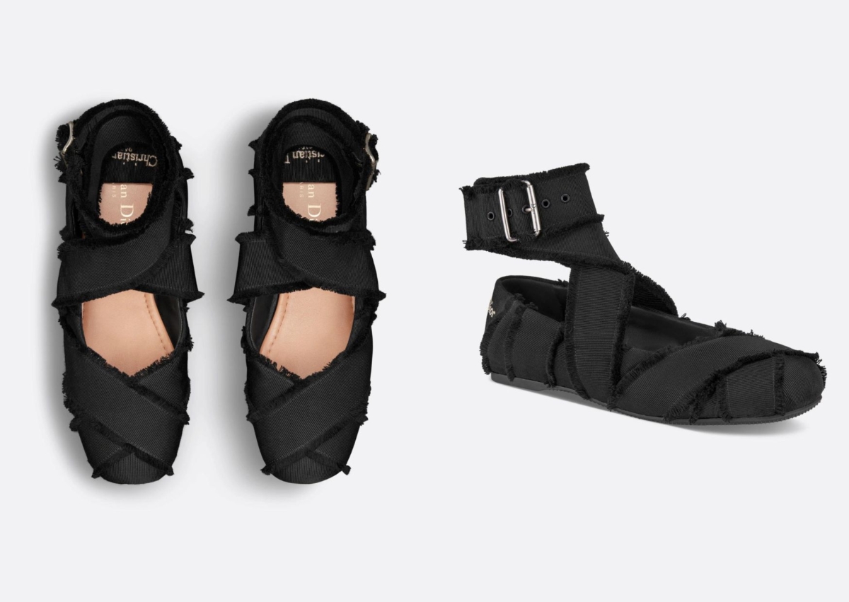精品芭蕾舞鞋03:Dior Songe 黑色緞帶流蘇 芭蕾平底鞋,NT$ 32,000