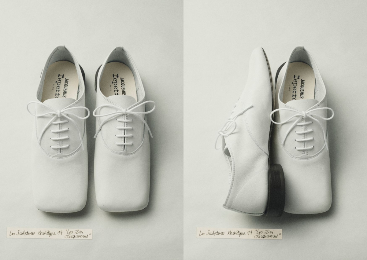本次聯名鞋款中,JACQUEMUS 對 Repetto 經典牛津鞋款 Zizi 做了全新演繹,將原本圓狀的楦頭改為方型、鞋跟改為圓型,保留了原先簡潔俐落的線條,更以幾何的方式重新建構,而獨特的方形楦頭讓人聯想起芭蕾舞鞋,也呼應了 Repetto 以芭蕾舞起家、深深扎根的傳統,這雙鞋款在 Repetto 位於法國的工作室製作,並以品牌獨家研發的 Sitch-And-Return 工藝,以中性的線條展現出 Repetto 的卓越工藝和 JACQUEMUS 具前瞻性的設計。