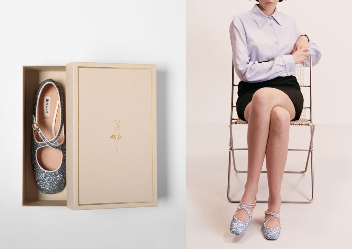 Bally 這次從典藏佳作中擷取靈感推出「Ballyrina 系列」,以摩登設計煥新演繹品牌經典,再次續寫 Bally 全新製鞋篇章,系列中的三款新品,其中池畔藍、夢幻粉和百搭黑綴以細緻亮片,採用經典的瑪麗珍鞋外型,搭扣繫帶再現傳統芭蕾舞鞋的交叉綁帶,皮革滾邊細節更加精緻。