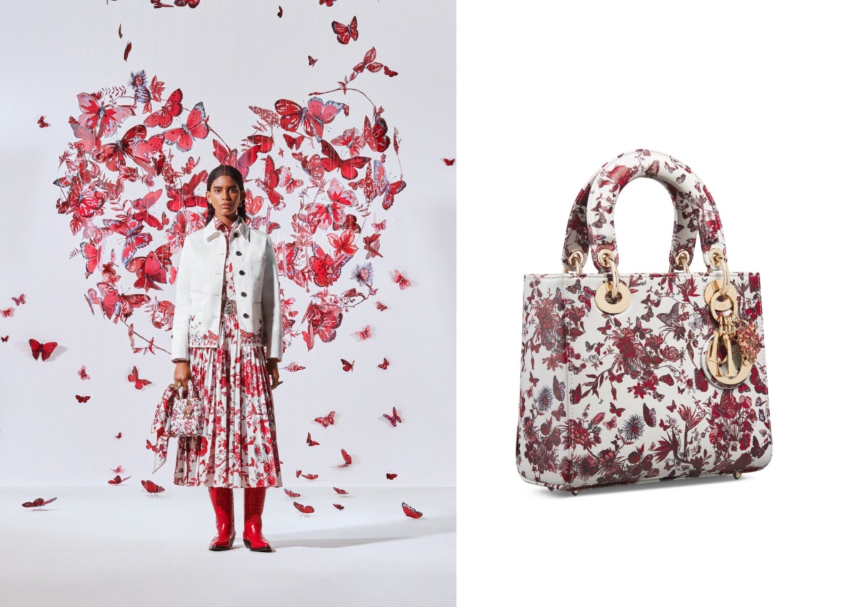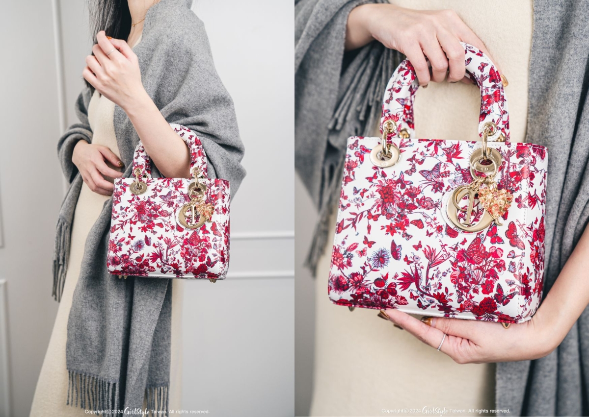為了慶祝浪漫氛圍與情感的時刻,Dior 推出由女裝創意總監 Maria Grazia Chiuri 著手打造的 Le Coeur des Papillons 膠囊系列,與 2024早春度假系列相互呼應,由藝術家Pietro Ruffo 所設計的經典創作,以多層次的花朵、蝴蝶交織成心形的圖騰,也全都躍上 Lady Dior 手袋上,加上標誌性設計DIOR字樣和愛心綴飾更引人矚目,大小適中的尺寸也方便外出揹,容量也是非常能裝!