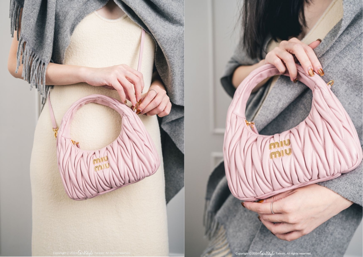 提到情人節當然不能錯過女孩們最愛的 Miu Miu,Wander 手袋在那麼多季以來不斷被重新演繹,成了 Miu Miu 系列的經典包袋之一,這款 Wander 手袋以 Matelassé 納帕皮革打造,精湛工藝塑造而成的細膩立體效果是最大特色,半月形設計為包身注一股復古格調與當代優雅韻味,以溫柔的淡粉色調呈現,手提很知性優雅,肩揹又帶點俏皮氣息。
