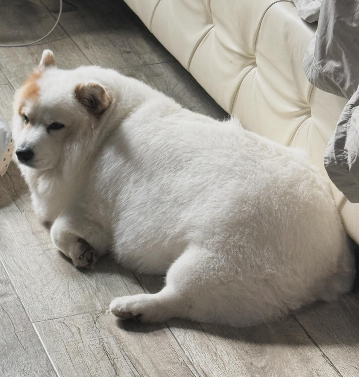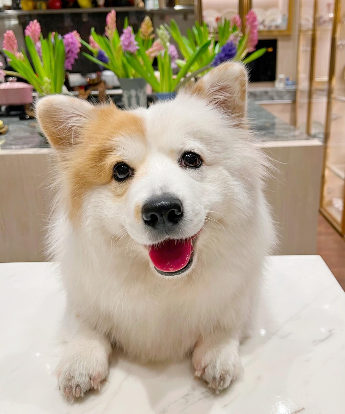 主人還常常在IG打趣地說 Meringue 是多元品種的狗狗,混了柯基、熊貓、倉鼠、豬豬跟薩摩耶,但其實她真的是100%的柯基啦,但很特別的是他全身上下就只有右眼跟鼻子一點點的棕色毛毛,其他都是白色的蓬鬆毛毛,是不是真的很神奇!