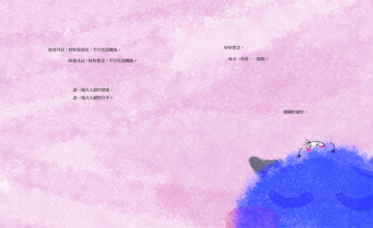 透過童稚的角色訴說「喜歡」沒那麼複雜。喜歡就是散很長的步、牽很長的手、說很濃的情話,我們的心靠在一起,「喜歡」是如此純粹自然。