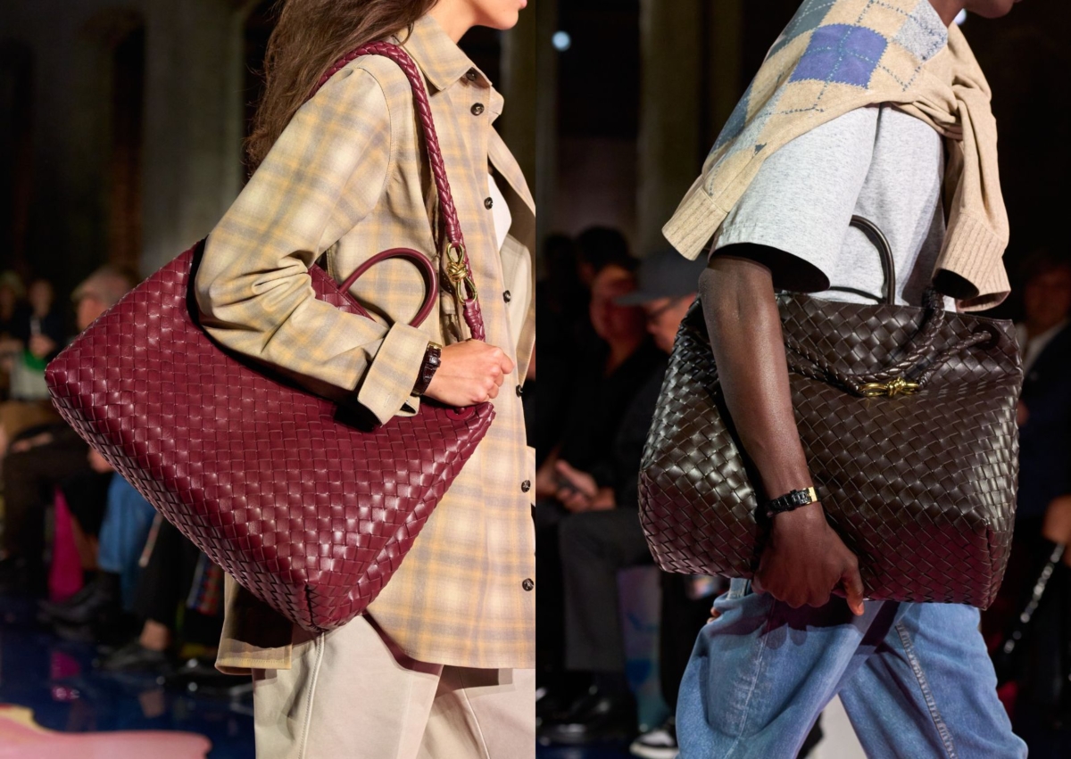 Bottega Veneta 2023 春夏大秀上一開場就亮相的 Andiamo,正是創意總監 Matthieu Blazy 上任後設計的第一顆新包,Andiamo 代表義大利文的 Let’s go(我們走吧),厭捲了小廢包,那麼這顆大包絕對超惹人喜歡,外觀以摩登又實用的托特包型,採柔軟羊皮製成,搭配品牌標誌性 Intrecciato 皮革編織技術,點綴著黃銅打造的立體繩結符碼,以純粹俐落的輪廓,揮灑出簡約卻永恆的經典設計。秀上模特兒們穿著看似簡單的格紋襯衫和牛仔褲,其實都是由皮革製成的,就像 Andiamo 包款一樣,看似隨性優雅大方,實則細節滿載,以流動中的極致工藝打造日常。