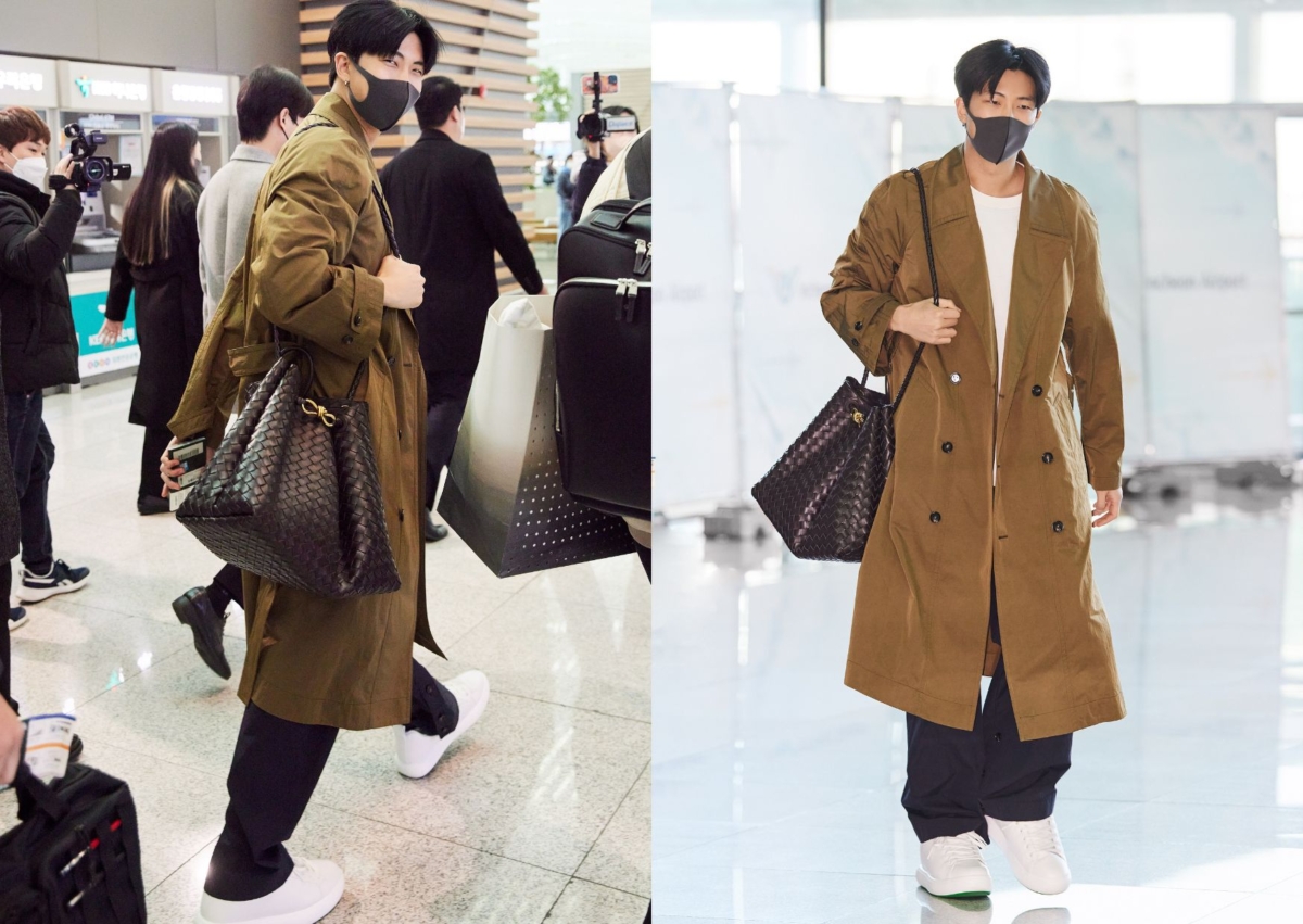 2023年3月,創意總監 Matthieu Blazy 在個人社群發布 BTS 防彈少年團隊長 RM 全新形象照,這舉動引起時尚圈熱烈討論,RM 成為品牌第一位官宣的 Kpop 明星、也是首位登上 Bottega Veneta 官方形象照的藝人。形象照中 RM 穿著格紋皮革襯衫和牛仔褲,手上拿的正是這顆大熱包款 Andiamo,機場穿搭也不忘帶上同款包,可見這顆包對品牌來說的重要程度了吧!