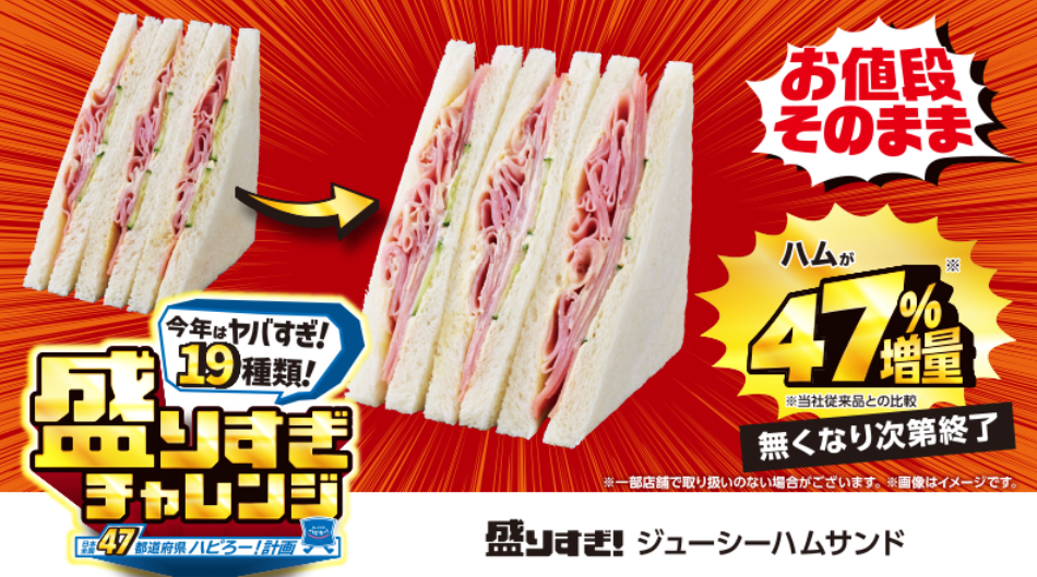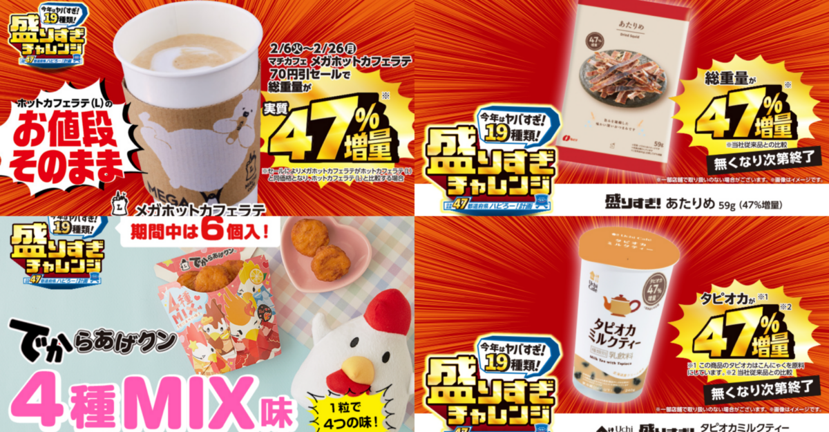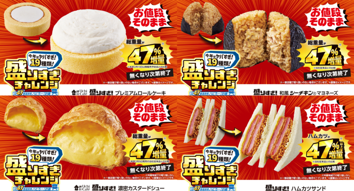 日本便利商店LAWSON從2月初開始推出限定3週的食品「增量47%加量不加價」活動,將19種自家食物「膨脹」起來販售,消息一出全日本民眾都蓄勢待發。