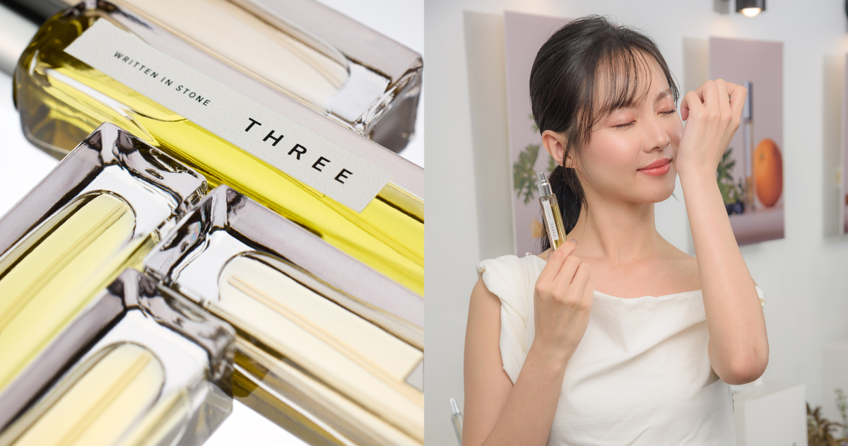 THREE 精油淡香水是由精油構築香味的淡香水,花境富含優雅甜美的玫瑰與玫瑰天竺葵,在陣陣花香中感受到薰衣草交融其中,茶樹與尤加利更增添清爽的透明感,最後由廣藿香及雪松香氣輕柔承托花香調氣味,不論是外出前、工作中的空檔、睡前或是起床時,皆適用於任何想要轉換心情的時刻。
