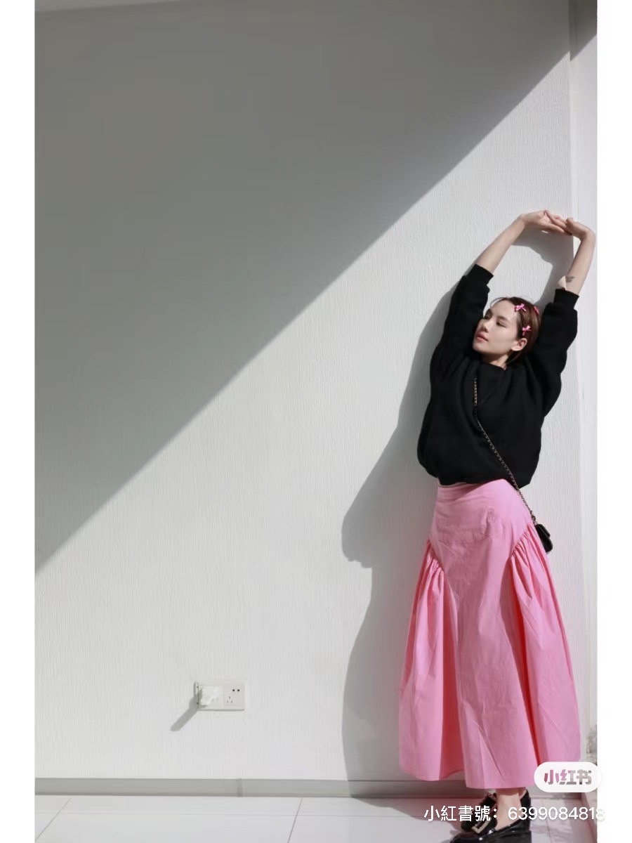 黑色毛衣絕對是冬日衣櫃必備,進入春天為自己挑選一件讓心情飛揚的粉色中長裙,雖然是粉紅色但因為剪裁大方優雅,是不分年齡都能展現氣質的首選,為新的一季注入滿滿開心能量,激發戀愛多巴胺吧♡