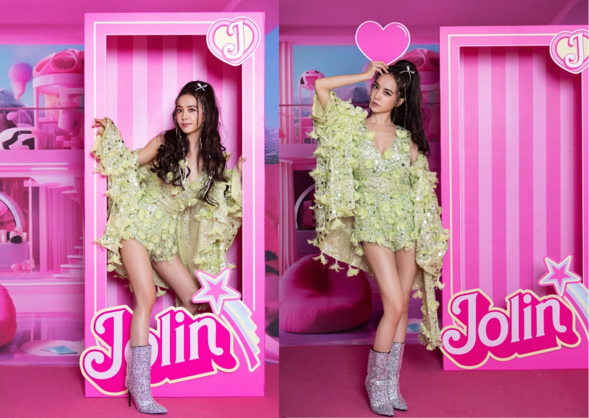 先前2024 跨年晚會蔡依林在湖南衛視現場演出,蔡依林在社群寫下「您 2024 訂製的音樂芭比 – 蔡依林 Jolin Tsai 已經到貨,請簽收。」道出了 Valentino 為他打造的設計主題,第一套以 Valentino The Beginning 系列高級訂製服裝的 Look 69 蘋果綠羽毛亮片服裝現身,佈滿一層層繁複羽毛和手工亮片,腳踩銀色亮片中長靴,整身既閃亮又高調!