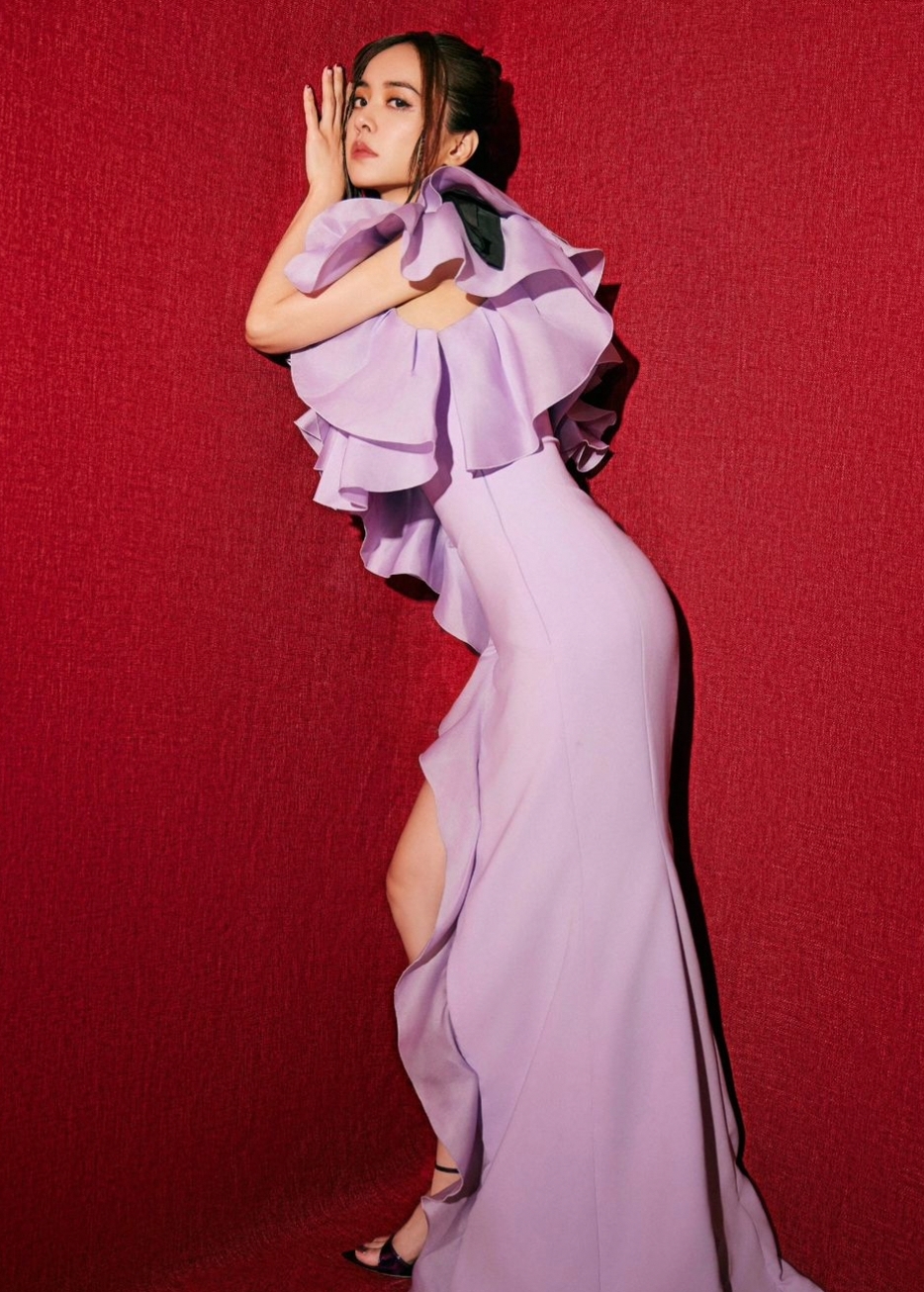 其實這代言人寶座一直以來都有跡可循,最近曬出與 Valentino 的合作是年節時在大陸春晚的演出,換上一身 Valentino 訂製淡紫色荷葉邊禮服,不對稱設計更凸顯身材曲線,露出一半大長腿,好比例藏不住!