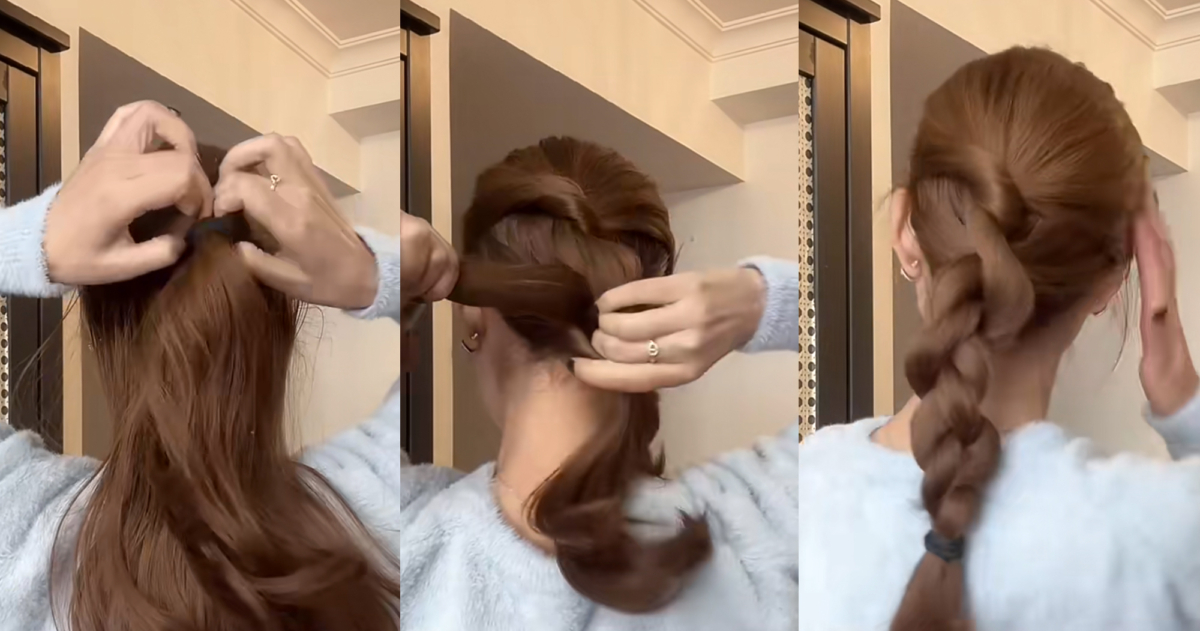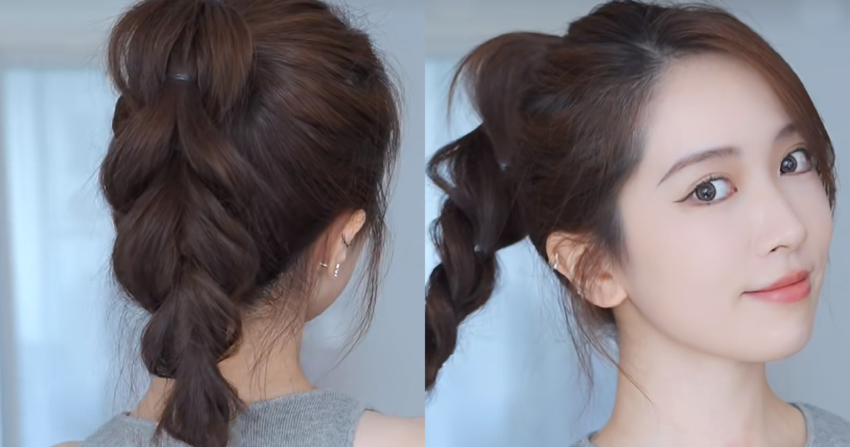 先從耳朵位置取一搓頭髮扎成公主半頭,在把橡皮筋往後拉中間掏出一個洞,將公主頭髮束往洞裡翻轉一圈後再翻轉一圈,接著扭轉一圈後手指穿過洞拉出剩於髮尾,接著開始把頭髮想像成橡皮筋,左右邊交替的將頭髮穿過洞內,最後用橡皮筋固定住就完成囉!不需要使用太多橡皮筋完全是出遊時的首選造型!
