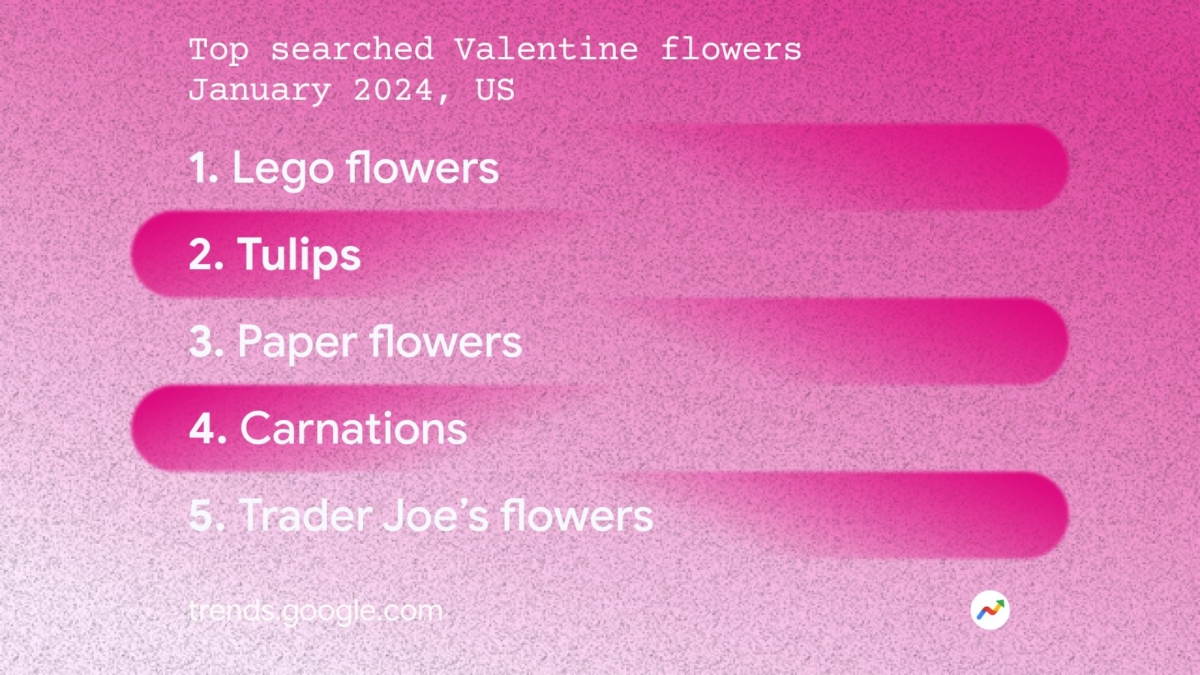 比起鮮花,你有更喜歡樂高花嗎?Google公開「2024情人節搜尋排行榜」Top1出乎意料,3/14可以參考♡