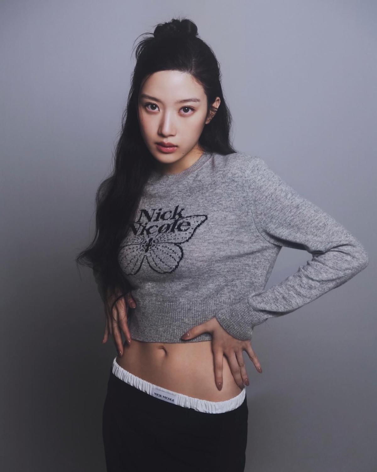 從Y2K低腰褲搭配高腰內褲到最近由Miu Miu所帶起的內褲外穿時尚,都引起了很多關注討論。文佳煐也大膽跟上「內褲外露穿搭」,她以灰色韓系品牌Nick & Nicole針織上衣搭配黑色長裙,腰部拼接白色面料製造出內褲外穿的既視感,不僅充滿個性,也讓基本款單品有了新鮮感。