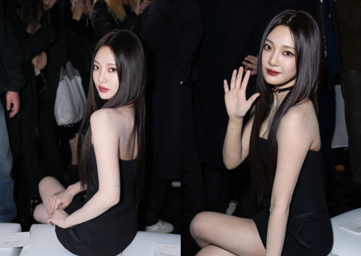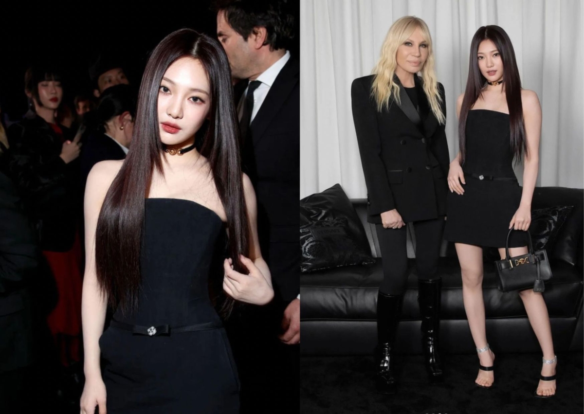 剛上任的 Versace品牌大使 aespa 寧寧這次也來到秋冬大秀上!選擇 Versace 黑色平口連身短裙、腳踩露趾高跟鞋,配戴飾有金屬扣環的頸鏈,手拿 Versace 新款黑色 Medusa '95手拿包,一頭長直髮氣質既性性感又優雅,膚質白裡透紅狀態太好!
