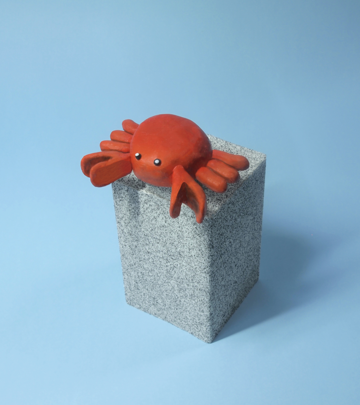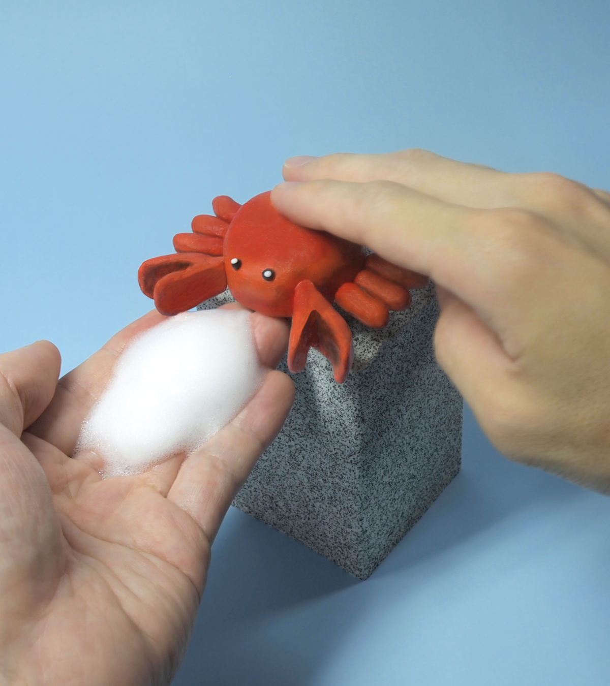 大家有發現實體化的螃蟹露出比原先嘴巴要大些嗎?那是為了要方便泡泡被擠壓出做的調整喔~