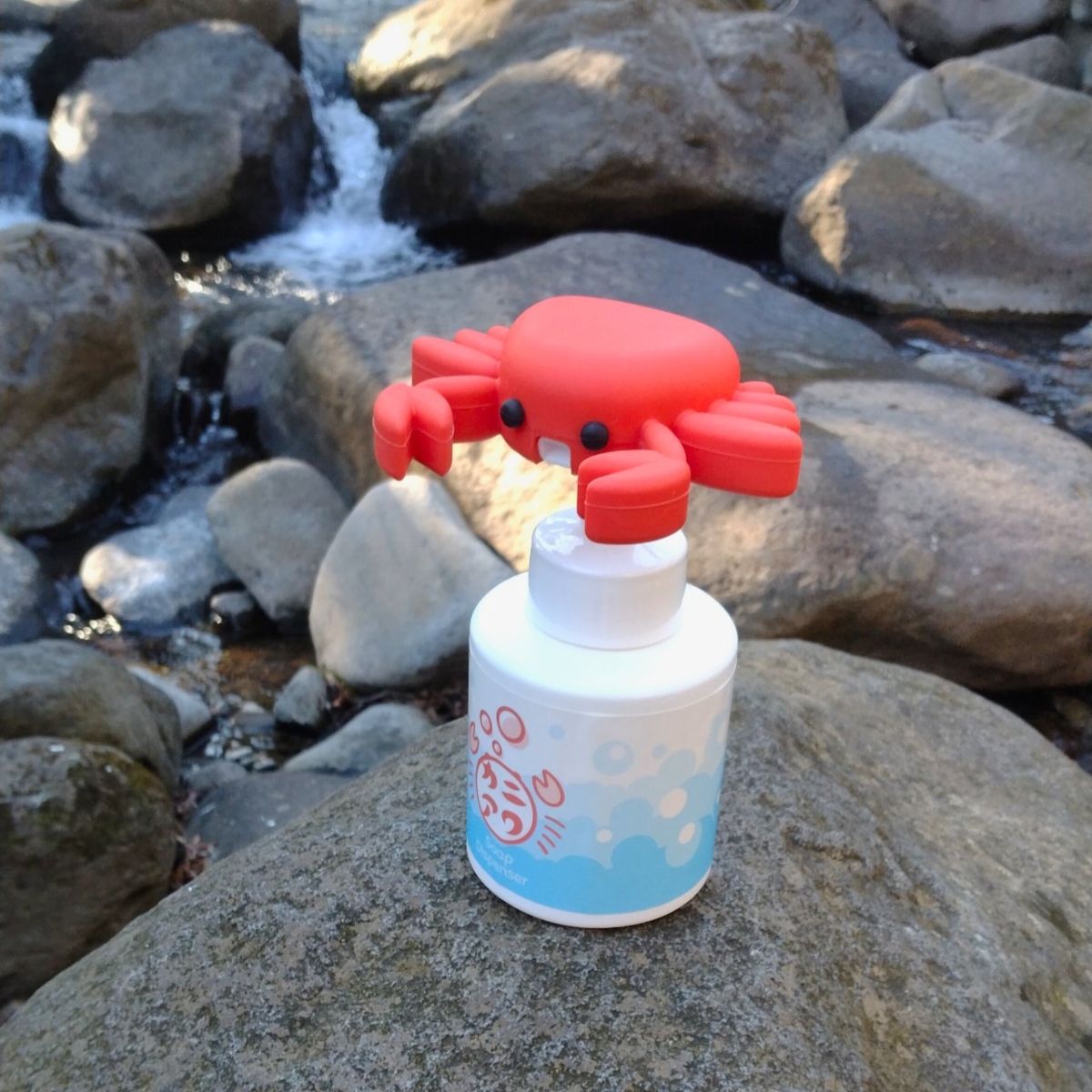 讓整個洗手液煥然一新的重點其實就只是上面的小螃蟹XD 它可以拿下做替換,購買時,小螃蟹和洗手液是同時販售的,如果之後洗手液用完,可以把其他洗手液倒入當補充再次使用喔!