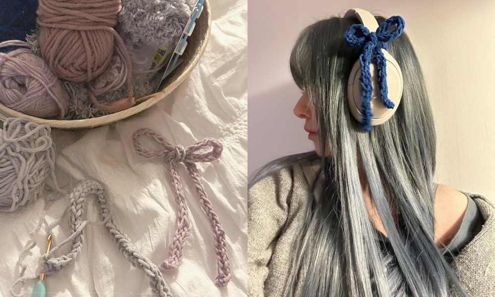 剛開始練習編織的小櫻花最初向大家展示自己的編織作品是蝴蝶結掛繩,雖然是簡單的編織作品,但小櫻花一次做了3個將它綁在耳機、包包上,小巧可愛的配件設計引起許多粉絲在當時跟著模仿。