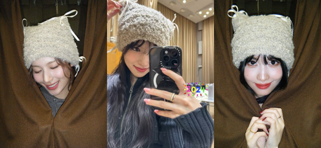 除此之外,小櫻花還在一年中偶像們忙得不可開交的年末頒獎典禮時期,製作了3頂同款毛帽送給Twice的日本成員好友Sana、Mina和Momo~在幾乎無法休息的時間裡小櫻花竟然還能做出這麼耗時的編織,完全讓大家對她誇目相看。