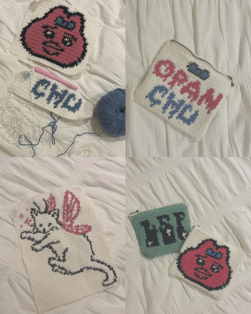 完全陷入編織世界中的小櫻花一織就停不下來,持續織了超多東西送身邊的人,像是成員允真喜歡水母,就織了一個水母小吊飾給她;曾經一起舞台合作的歌手尹度玹有隻可愛狗狗,就織了超可愛的小圍巾、小帽子給牠戴;還在去年日本表演年末舞台好不容易回老家時,把自己織的小包包送給奶奶♡