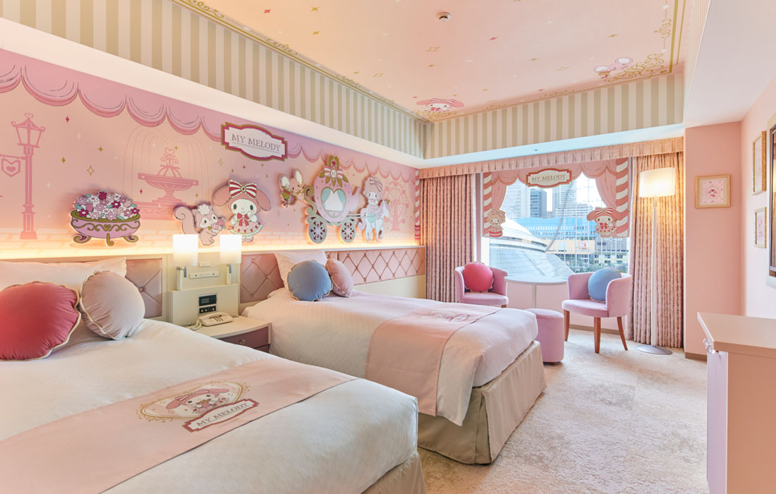 而就在近日,東京巨蛋飯店宣布與超人氣卡通三麗鷗人氣角色「酷洛米」和「美樂帝」合作,並在官網上發出2種主題的房型照片!滿滿的紫色與粉紅色,加上酷洛米&美樂帝精緻的角色背板,整個房間瞬間變得超少女♡♡♡
