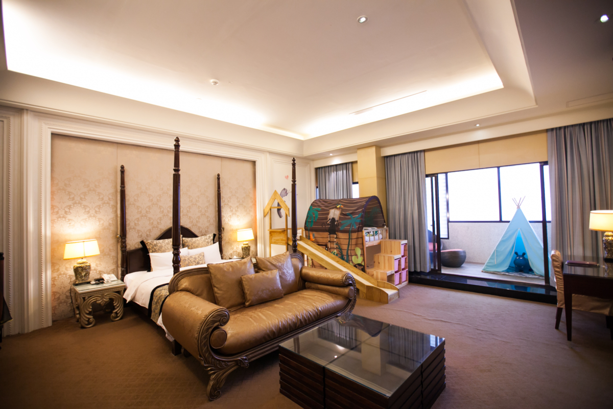各位爸媽們帶著小孩行程不能太多,小孩多餘的電就交給「豪華親子房」,房內有小孩最愛的兒童溜滑梯上下鋪雙層床組,還有兒童遊戲室,在房間就能玩好玩滿~而且還有浴缸!只要準備幾個超萌沐浴球,就沒問題啦!晚上等小孩睡了~夫妻時光也能一起看看電影,重溫熱戀時光,育兒兼約會一舉兩得!