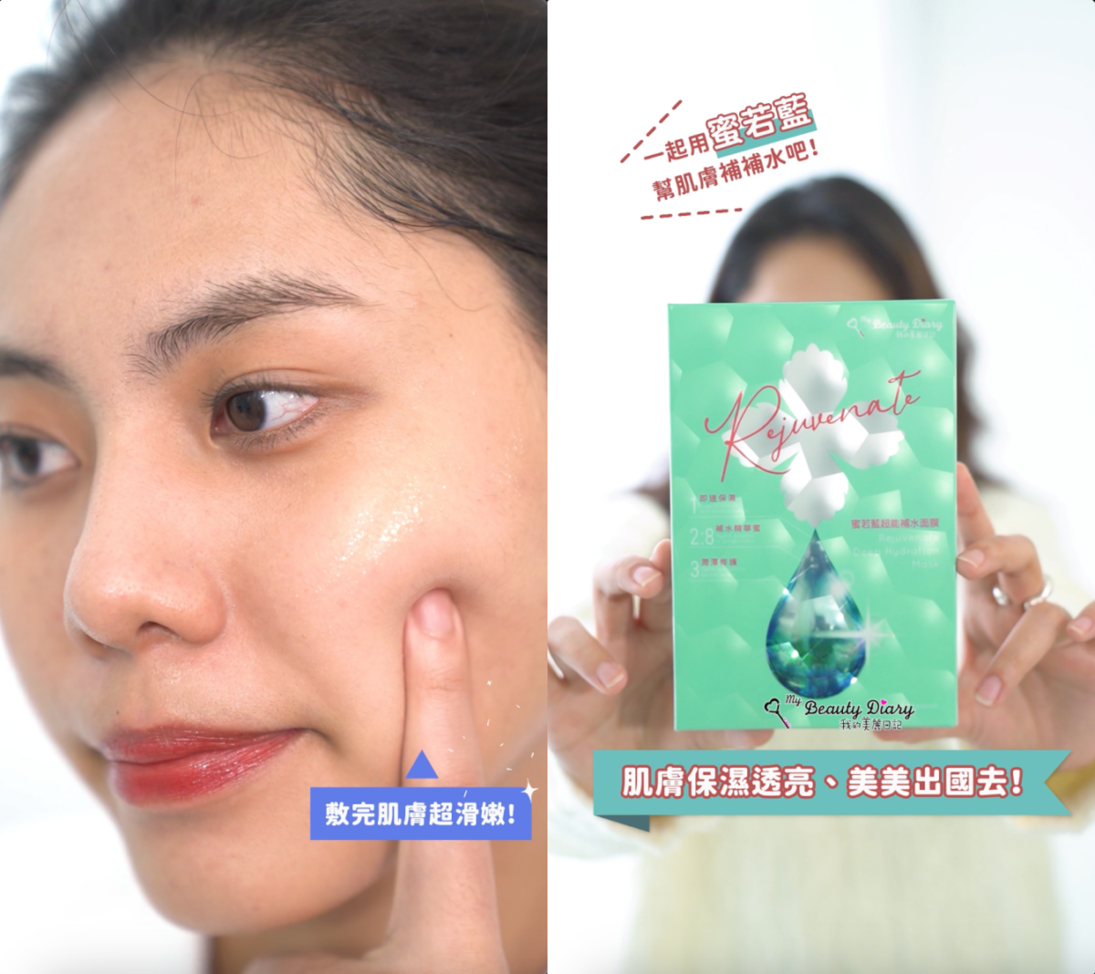 出國旅行對於女生來說,絕對是一大挑戰呀~從收行李到緊湊的行程安排,處處都充滿了考驗,但也別忘了在繁忙的時刻裡,給自己的肌膚一點愛與呵護!我的美麗日記「蜜若藍超能補水面膜」就像是隨身的保濕小天使,隨時隨地都能為肌膚注入水分、維持彈潤,就算是在繁忙的旅程中,也能在旅途中依然保持極佳的狀態!大家也別忘了旅行回國後,日常保濕更需要記得定期敷面膜,讓肌膚一直維持保濕透亮、美美等待下次出國去!各位快一起用蜜若藍幫肌膚補補水吧~~