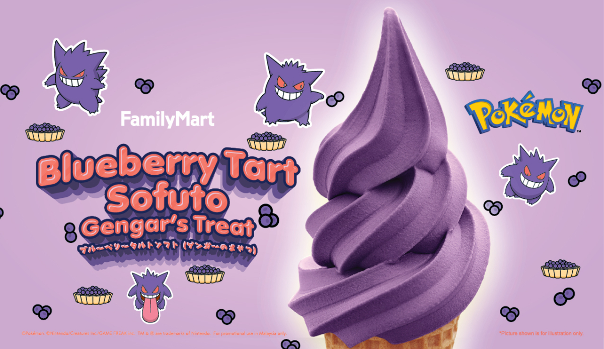 紫色風暴來襲!馬來西亞全家推出寶可夢「耿鬼霜淇淋」同色系藍莓口味網路爆紅,台灣4月也有「山丘藍霜淇淋」好想吃~