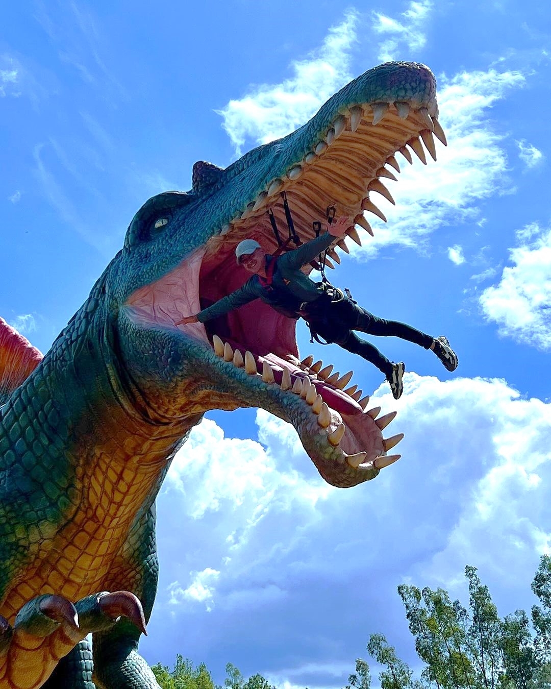 你以為這樣就夠酷了嗎?這間侏儸紀公園有推出可以與恐龍互動的體驗,那就是「被恐龍吃掉」XD 遊玩方式就是把你吊在恐龍的嘴巴裡,然後恐龍就會開始晃動多次開合咬你,看起來荒謬的遊樂設施卻意外大受歡迎,許多人還為了要被恐龍咬,慕名而來!畢竟一生中哪有其他機會可以被恐龍咬(笑)。