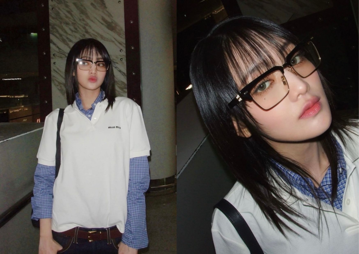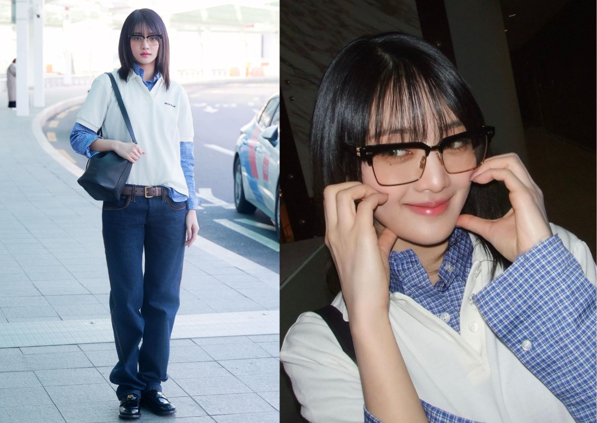 南韓女子團體 (G)I-DLE 成員Minnie 這回出席時裝秀前的機場穿搭也值得好好學穿搭!身穿 Miu Miu 白色Polo衫,與秀上內搭同款,內搭一件藍色格紋襯衫增加層次,俐落牛仔直筒褲搭黑皮鞋,整體亮點是臉上那隻大方框眼鏡,先前有提到扁橢圓眼鏡整正在流行,這次可能又將大方框眼鏡風潮帶回時尚圈了!