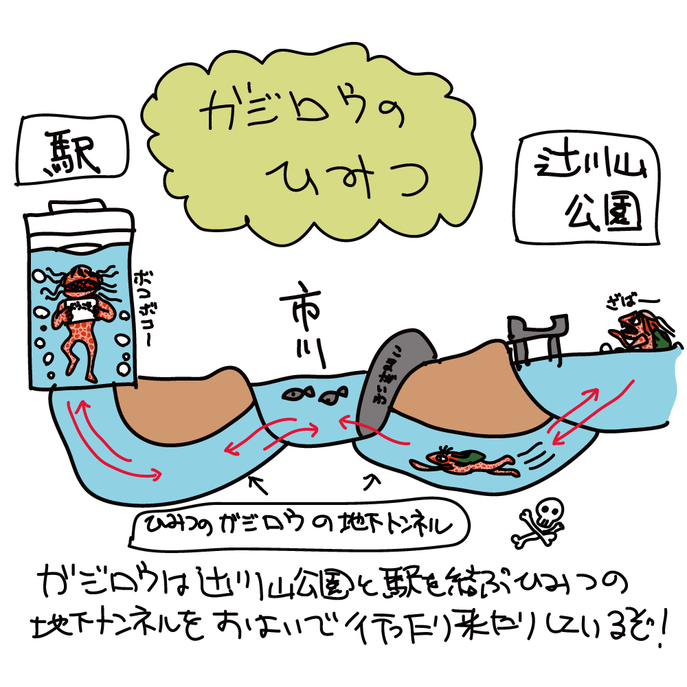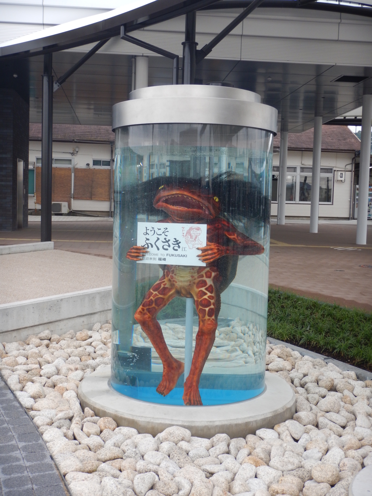 其實河次郎之前的身體是土黃色,也沒有伸出舌頭舔奇怪的噁心東西,據說是因為政府覺得原本的模樣不夠可怕不滿意,所以將牠升級,鐵了心就是要嚇大家(抖)。而他除了在公園還會在當地車站的廣場遊客交流中心出沒,官方還說是河次郎自己每天從地下水來回游動。