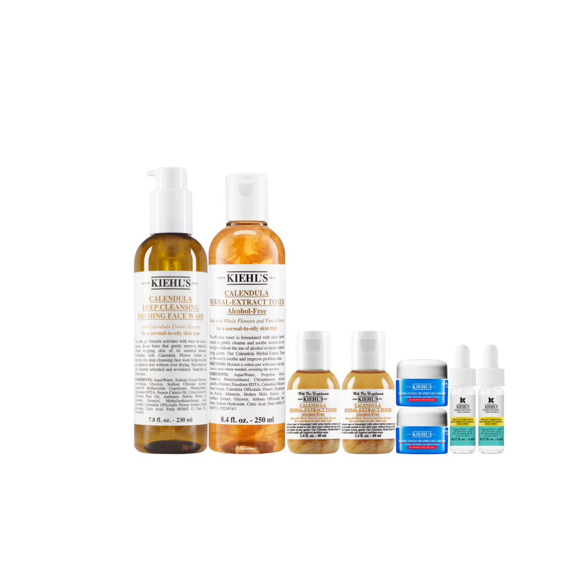 金盞花植物精華化妝水 250ml+金盞花潔面泡泡凝露 230 ml+2%水楊酸痘痘精華露 4ml*2+冰河醣蛋白吸油水感凝凍 7ml*2+金盞花植物精華化妝水 40ml*2