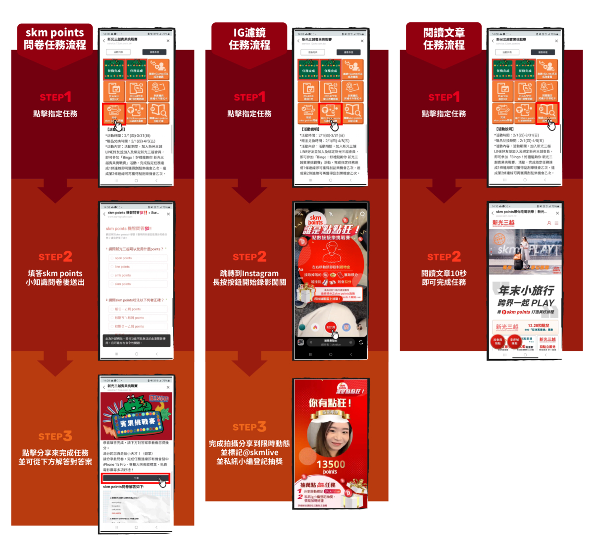 更簡單的來了!只要填寫幽默風趣的skm points問卷、玩IG濾鏡、閱讀相關文章,即可完成3項任務,直接三分鐘搞定一條連線!