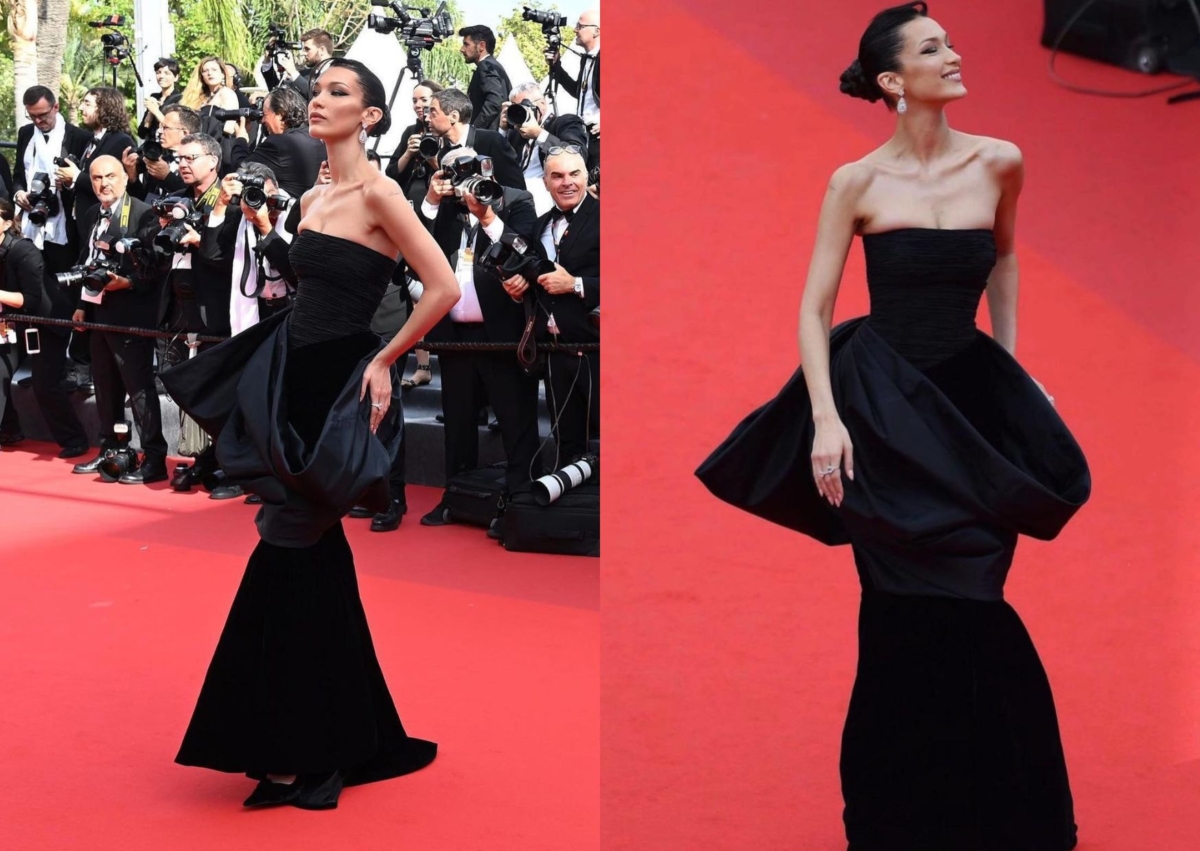 Bella Hadid 在 2022 年 5 月出席坎城影展時的這套黑色特殊剪裁禮服,是出自 Gianni Versace 在1987年時親手設計的,簡約平口、在腰部及臀部以垂墜造型做為設計,下擺則採魚尾型收尾,整體看似俐落又古典,Bella Hadid 一直以來都很擅長將古著、老派又復古時髦的個性融入她的日常穿搭,不得不讚賞她的獨特格調!