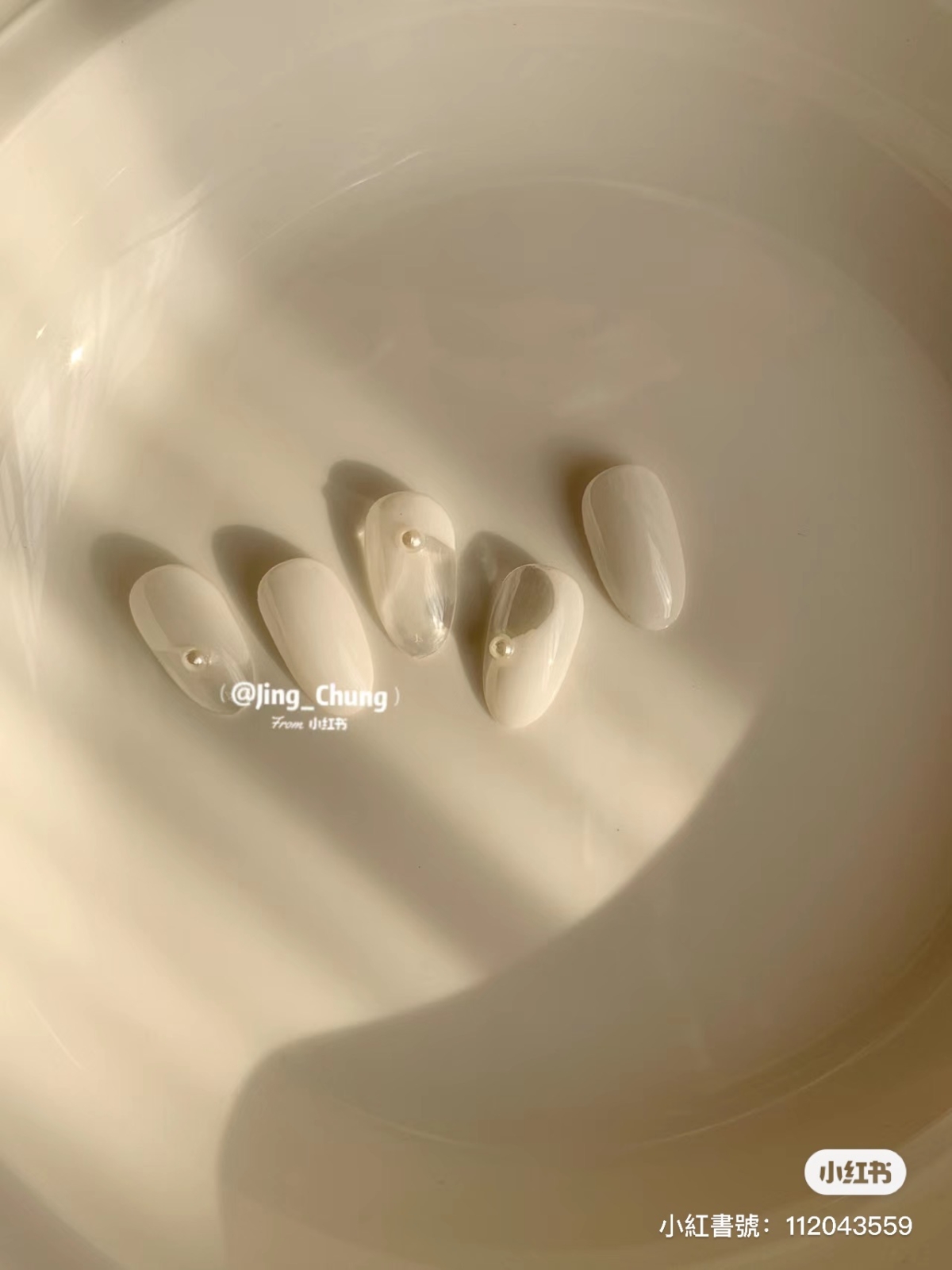 不論是日常生活還是重要場合,純白色+珍珠的美甲款式都能展現出不凡的優雅氣質。搭配清新的白色裙裝或是優雅的晚禮服,絕對可以成為眾人注目的焦點,珍珠元素也為整體增添一份迷人的奢華感。