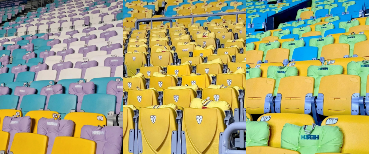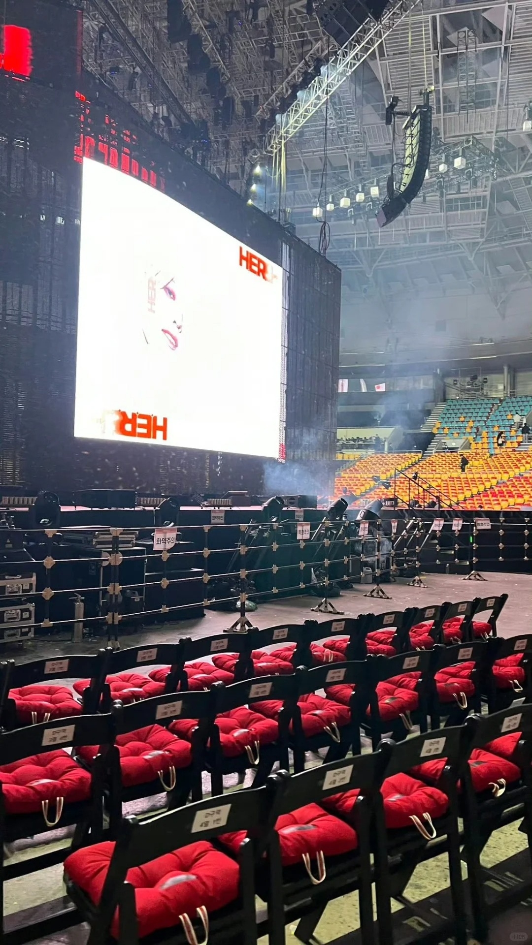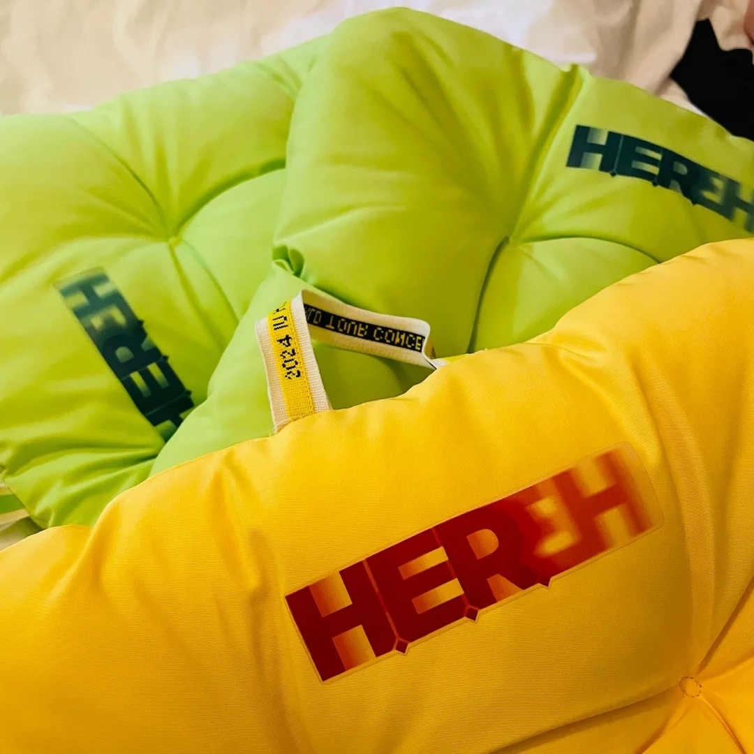 今年演唱會的坐墊更是一天換一種顏色,紫、紅、黃、綠4種亮麗的顏色坐墊整整齊齊放在坐椅上,粉絲入場時看到都覺得超級壯觀、可愛。坐墊上也有印這次H.E.R巡迴演唱會的名稱與年份,真的超有紀念價值!