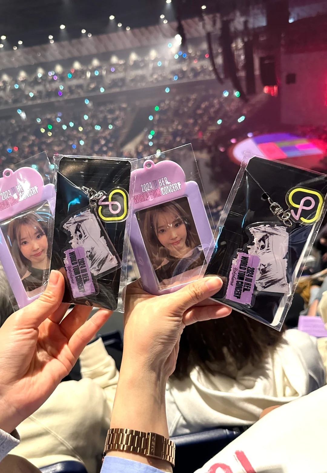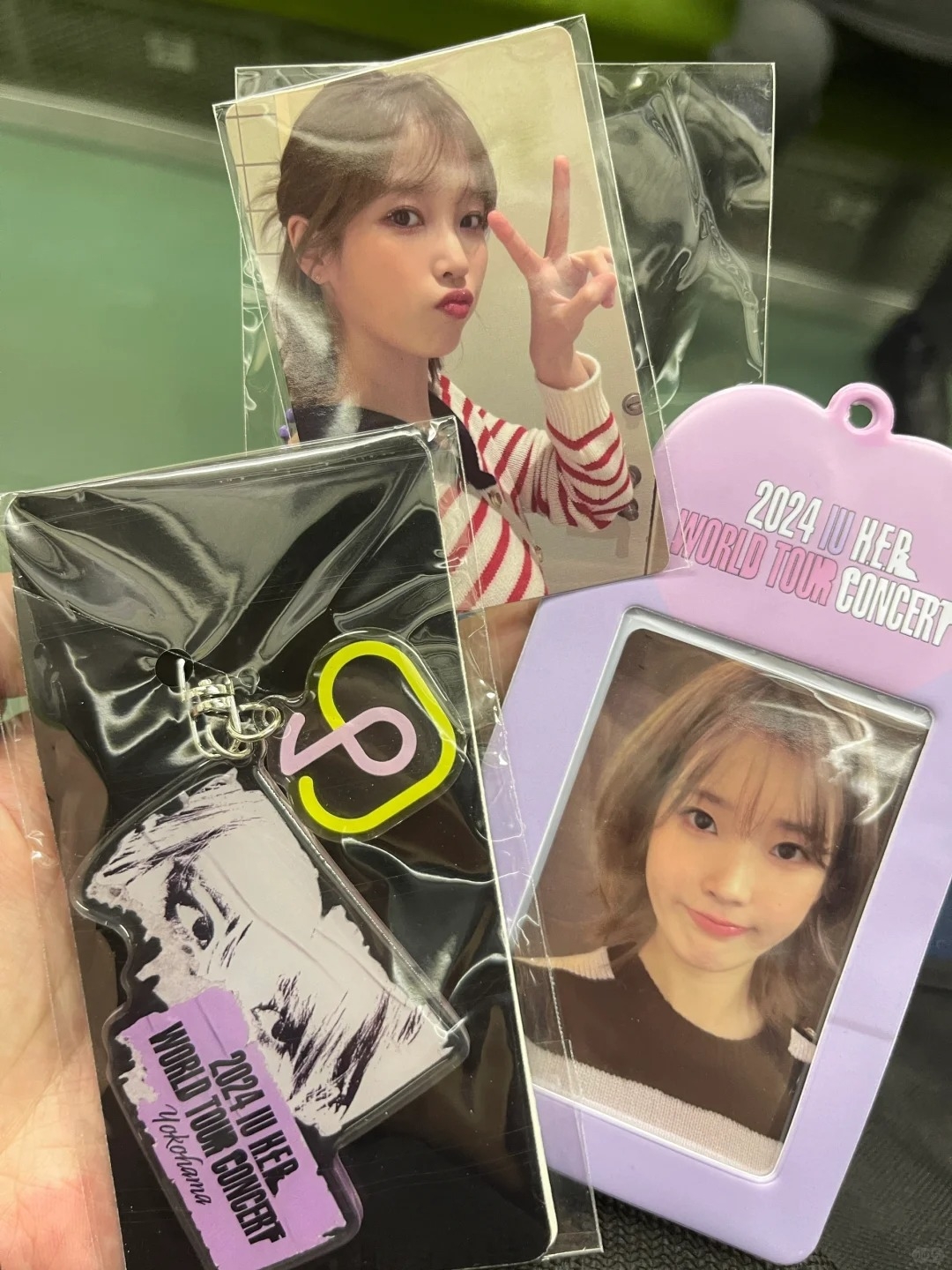 繽紛的坐墊其實僅限定首爾場,雖然海外的粉絲每次都非常羨慕,但還是覺得只要有搶到票、看得到IU已心滿意足。不過今年卻出現大驚喜!就在3/23~3/24日本橫濱場,每位粉絲入場時竟意外收到IU的2張小卡、卡套和精緻的壓克力吊飾!