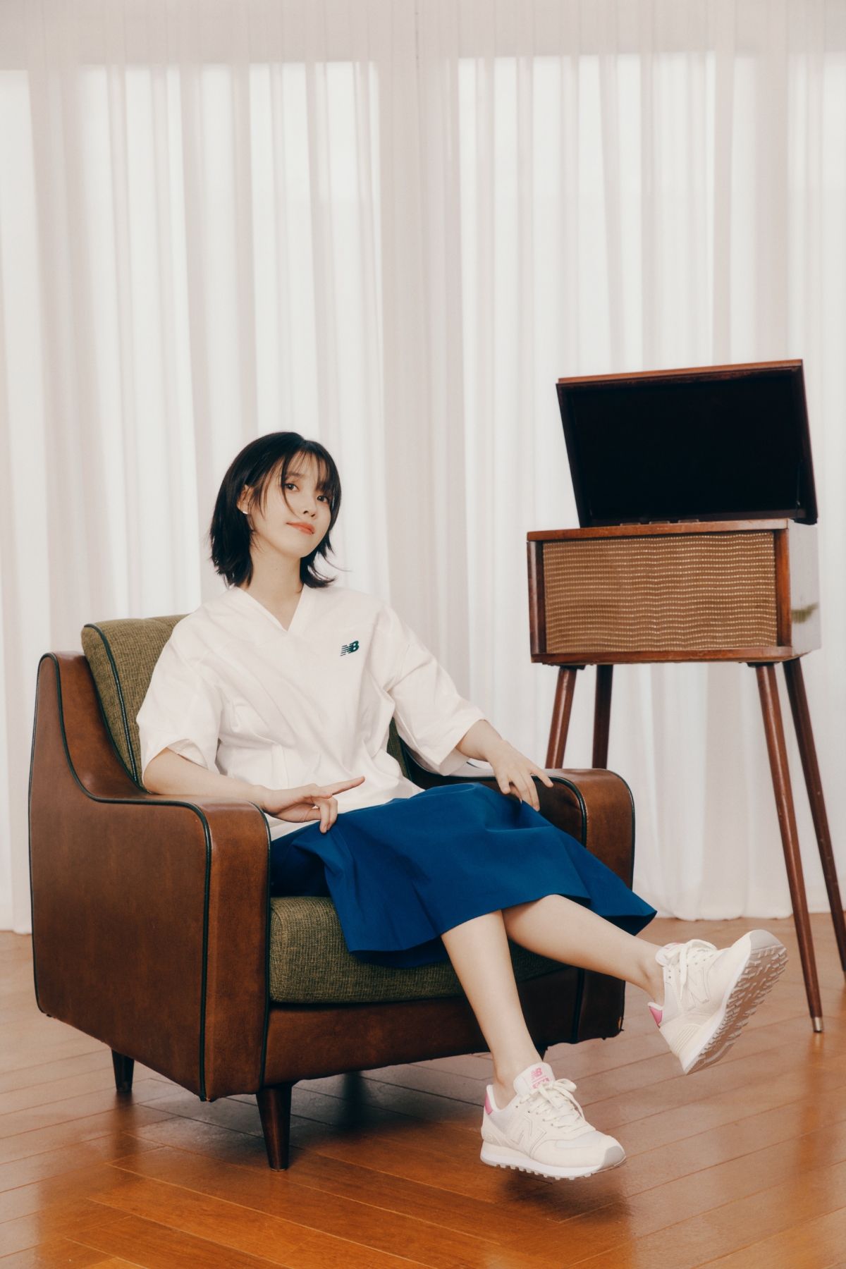 另外New Balance 550復古、簡約設計,搭配任何顏色的服裝都超百搭,喜歡中性風格的人也可以像IU一樣配上棒球裝,化身美式復古小甜心在演唱會上為IU應援!