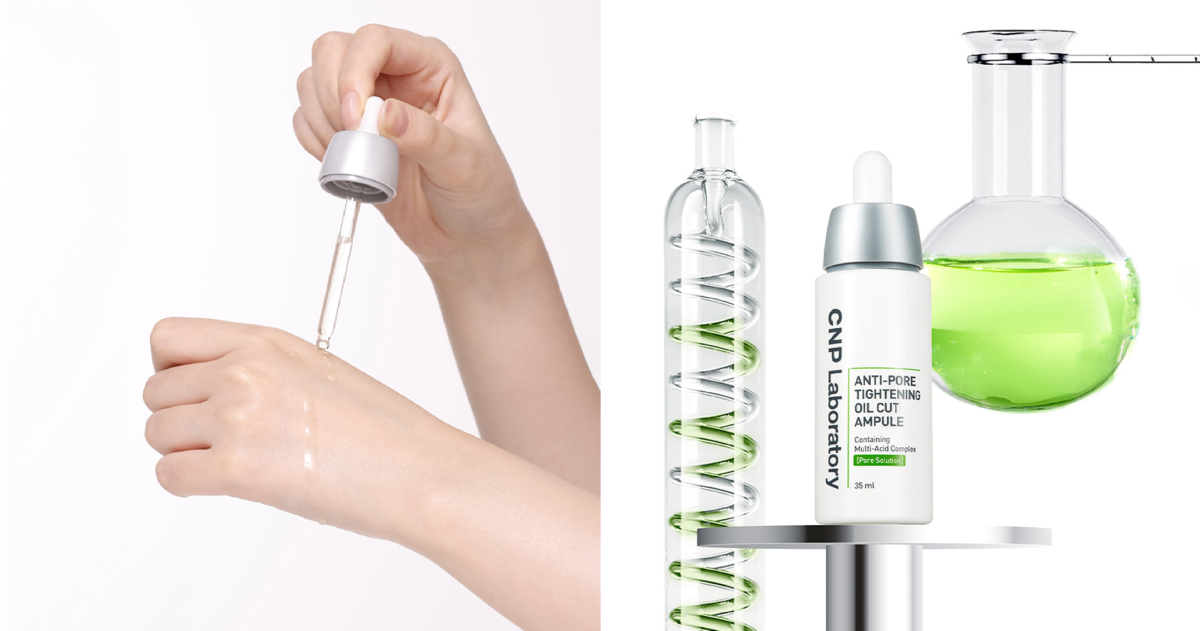 CNP全新推出的毛孔安瓶「粉刺分手毛孔調理安瓶」添加杏仁酸、水楊酸、琥珀酸等多種酸類成分,一次解決黑頭、白頭、毛孔、角質、皮脂等五大毛孔問題,更搭配有效舒緩成分敏弱肌、痘痘肌皆可安心使用!