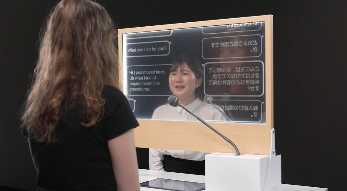 「即時翻譯螢幕」特別設計成透明也有原因,之前透過手機、平板翻譯後傳閱沒辦法像自然對話那樣看見人的臉部表情變化,會很容易錯過對方面部表情變化出現細微的錯誤,出現無法完整傳達訊息的情況,設計透明的面板不僅讓遊客與站務人員在對話上更有交流感,面對面的溝通也能感受到服務性。