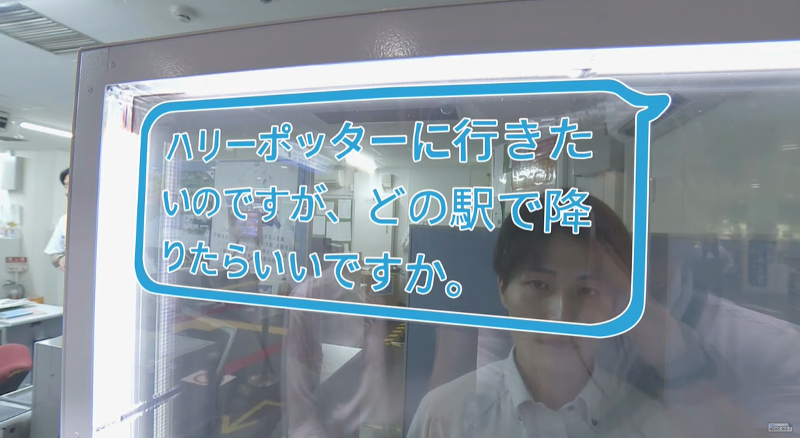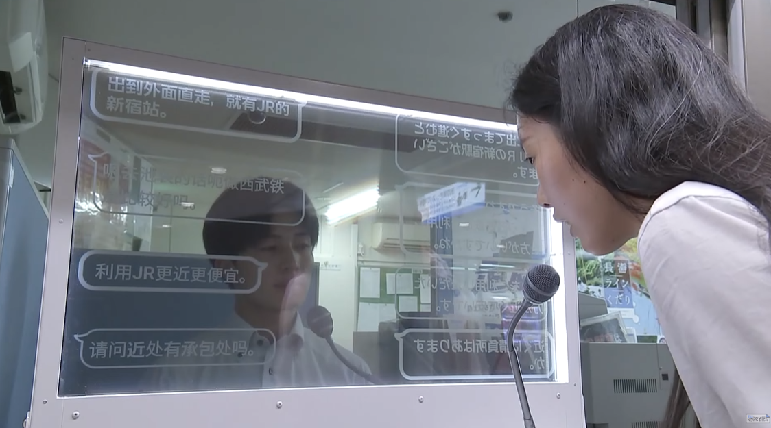 日本是亞洲旅遊大國,擁有獨特的文化風格吸引許多不同國家的人前去旅遊,不過面對太多語言的湧入有時讓站務人員也來不及反應,因此地鐵站在去年開始在詢問處窗口設置多個高科技的透明「即時翻譯螢幕」。
