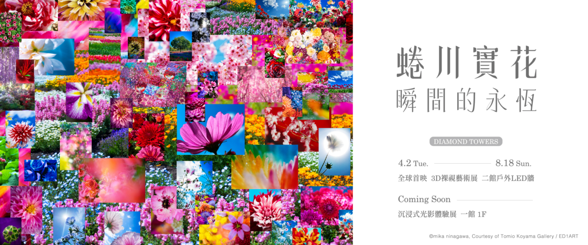 全台最新、最大的3D裸視牆於4/2(二)在新光三越 Diamond Towers 正式啟用,首展邀請享譽國際的日本知名攝影藝術家蜷川實花,以藝術生涯最大規模展覽系列-瞬間的永恆,初次嘗試 3D 裸視創作技術獻給新光三越與台灣粉絲,挑戰影像平面與立體界線,震撼市場的魔幻華麗巨作。