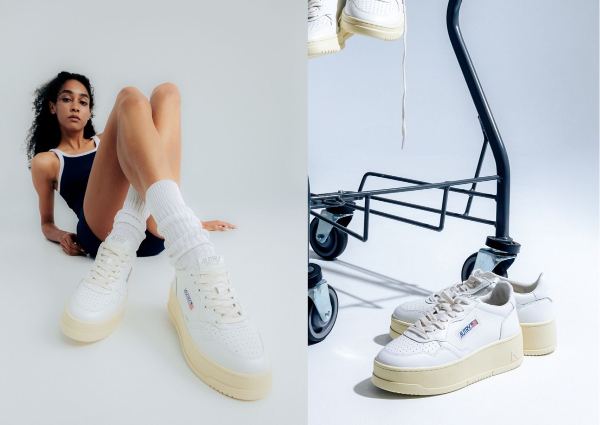 另外 AUTRY 也推出了經典大熱款式「Medalist 厚底皮革休閒鞋」,靈感源自於1980年代的復古風潮,並以現代的語彙重新詮釋,採用白色皮革鞋面為基調,搭配著厚實的鞋底和後跟上的標誌性徽標,展現出別樹一幟的獨特風格,整體顯得乾淨時髦,不管是穿牛仔褲或寬褲都超百搭!